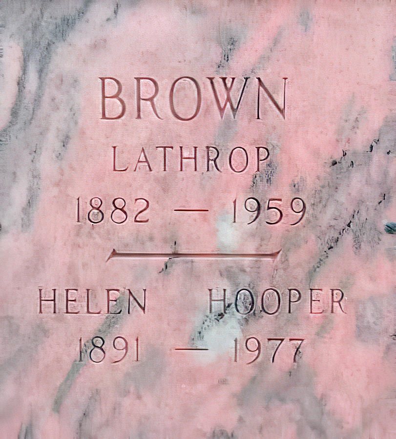 Helen Hooper Brown starb 1977, erst 18 Jahre nach ihrem Mann. Sie ruht heute im selben Grab wie dieser im Manasota Memorial Park in Bradenton, Florida.