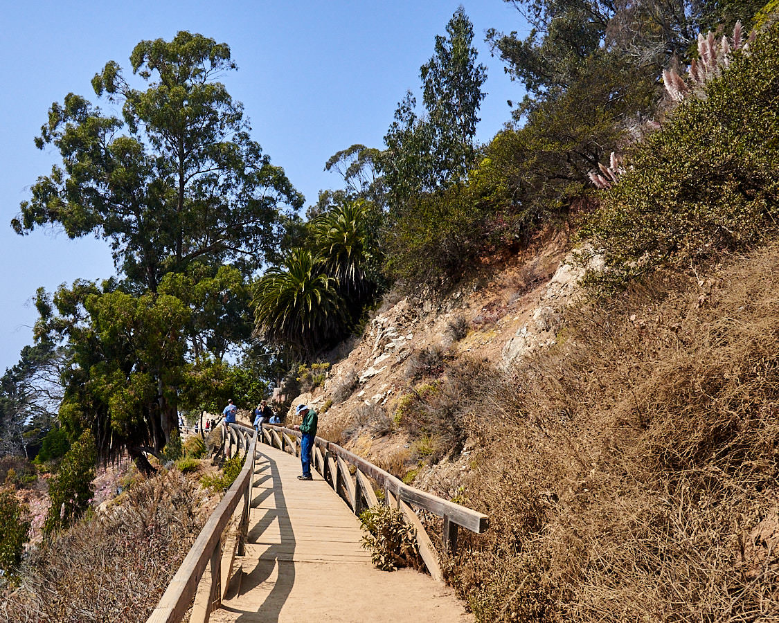 Die Vegetation ist für ein derartig felsiges Gebiet ausgesprochen üppig. Tanoaks („Lithocarpus densiflorus“, können 300 bis 350 Jahre alt werden), Amerikanische Erdbeerbäume, Chaparrals und Zypressen reichlich. Ja, nicht zu vergessen der Küstenmammutbaum („Californian Redwood“). Zu dieser Art gehören die mit bis zu 110 m höchsten lebenden Bäume der Welt. Und alt werden nicht nur Tanoaks. Küstenmammutbäume erreichen üblicherweise ein Alter von etwa 600 Jahren. Einzelne Exemplare werden aber auch über 2.000 Jahre alt, bei einem Exemplar wurde bei einer Zählung der Jahresringe ein Alter von 2.200 Jahren festgestellt. Der Küstenmammutbaum ist übrigens der Staatsbaum von Kalifornien.