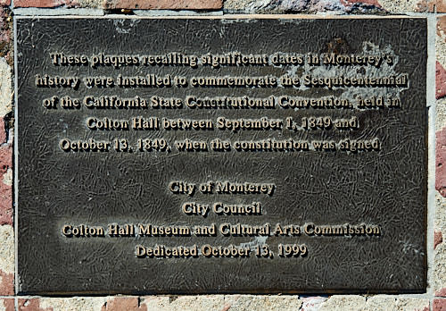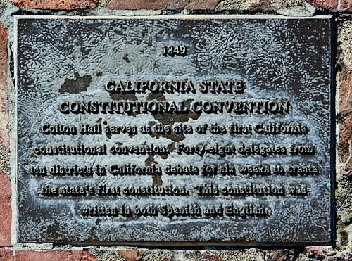 Im selben Jahr passierte aber noch Wichtigeres: In der eben erst fertiggestellten Colton Hall in Monterey tagte erstmals der California Constitution Convent. 48 Delegierte aus zehn Bezirken Kaliforniens debattierten sechs Wochen lang über die erste kalifornische Verfassung, die sowohl in Spanisch als auch in Englisch verfasst wurde. Am 9. September 1850 wurde Kalifornien als 31. Staat in die Vereinigten Staaten aufgenommen. Wie es die Convention schon vorgeschlagen hatte, wurde für kurze Zeit San Jose Hauptstadt Kaliforniens. 1854 wurde das von Sutter (siehe oben) gegründete Sacramento zur Hauptstadt von Kalifornien ernannt, was bis heute noch so ist.
