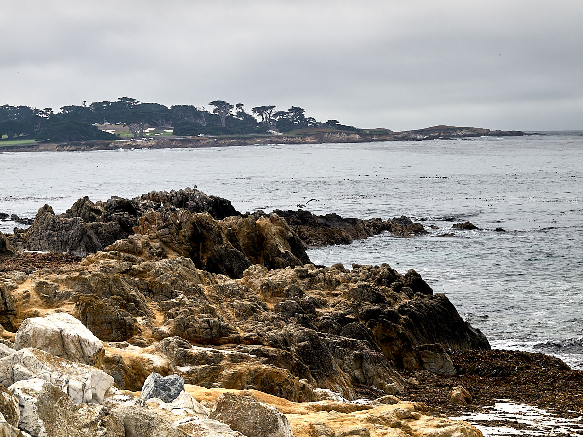 Zwischen Carmel und Monterey liegt eine der schönsten Halbinseln unserer Erde. Sie wurde bereits 1602 von spanischen Forschern entdeckt und kartografiert. Heute ist die größte Siedlung der Monterey-Halbinsel, die Pebble Beach Community, im Besitz der Pebble Beach Company („Pebble Beach“ bedeutet übrigens „Kieselstrand“). Die mittleren und großen Kieselsteine liegen an fast jedem Strandabschnitt. Und weil wir heute schon mal über Clint Eastwood geredet haben: Er besitzt nicht nur die Mission Ranch in Carmel, er ist auch Mitbesitzer der Pebble Beach Company.