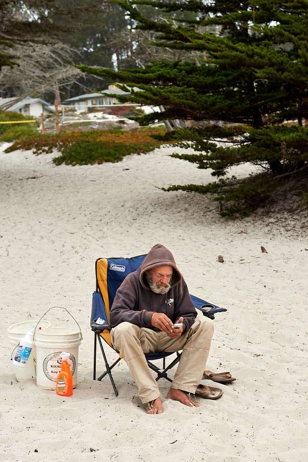 Heute machen wir einen Abstecher an die Küste, an den Strand von Carmel. Nicht unbedingt der Hunde wegen, wir wollen eine andere Seite von Carmel entdecken. Eine Meerjungfrau aus Sand. Der Künstler sitzt neben seiner Schöpfung und lässt uns wissen, dass er jeden Tag hier eine neue Skulptur aus Sand formt.