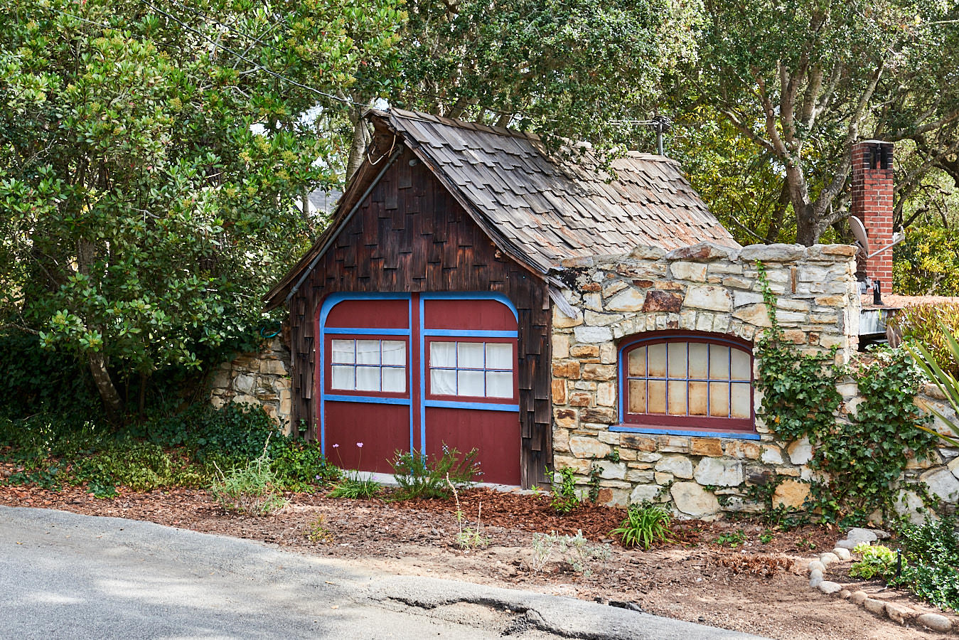 Von wegen Baumwurzeln: Neue Häuser dürfen in Carmel-by-the-Sea nur um Bäume herum gebaut werden. Der Charakter der Kleinstadt ist aber auch bisher bereits von Bäumen geprägt. Ich kenne keine andere Stadt, die von oben und auch aus der Fußgängerperspektive aussieht, als würde der Urwald nach ihr greifen.