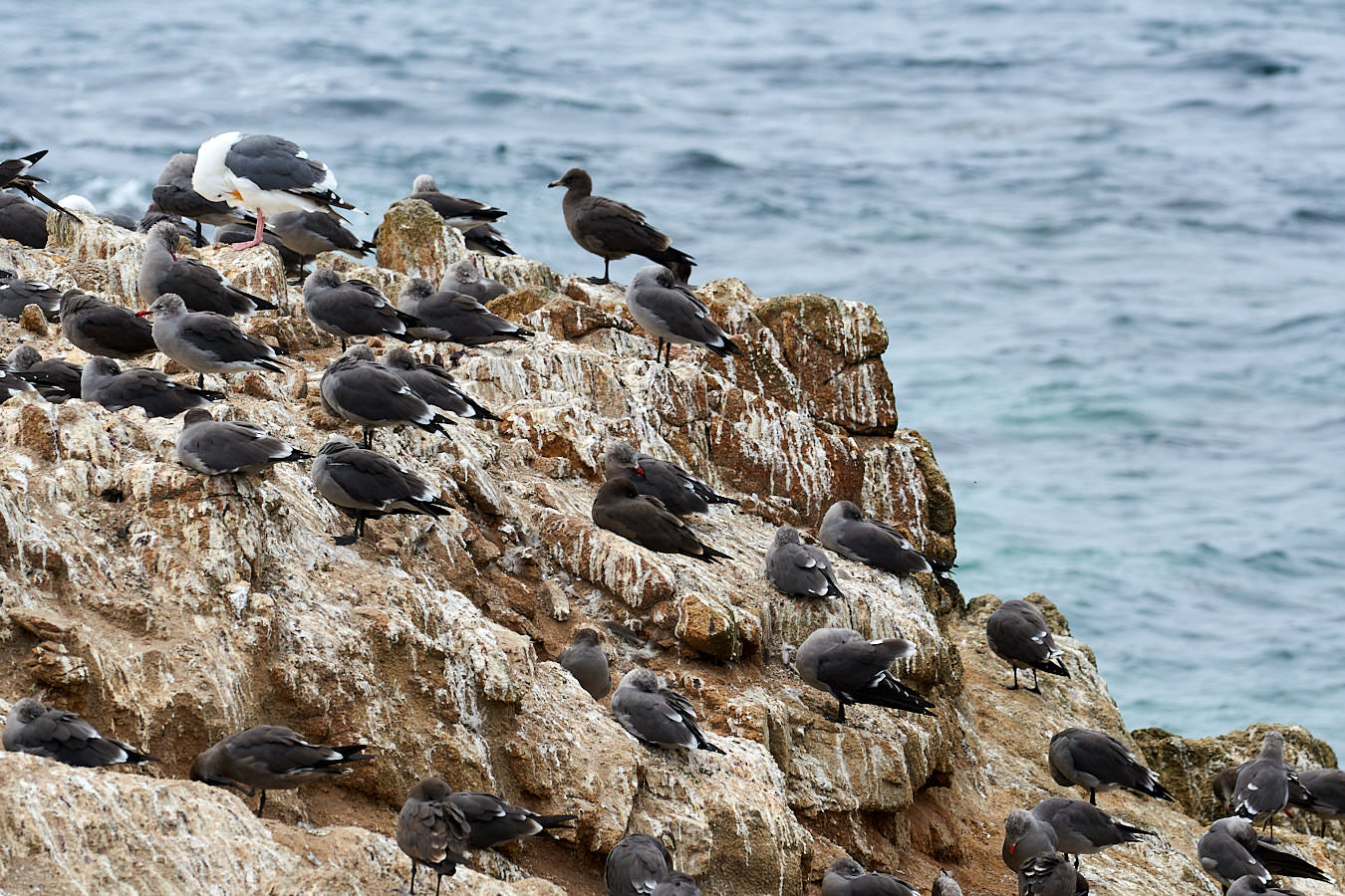 Der Felsen vor der Küste und die Küste selbst sind immer gespickt voll mit Vögeln. Von Frühling bis Sommer gesellen sich Kormorane und Pelikane zu den vielen Möwen.