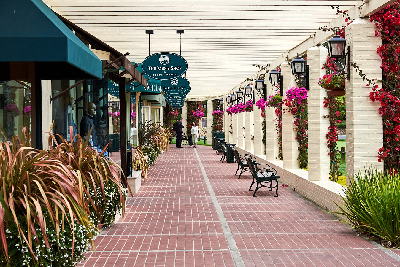 Die Lodge wurde 1919 als Zentrum des Pebble Beach Golf Links erbaut. Ein exklusives Hotel, Golfplatz, Tennisplätze und The Lodge Retail Arcade mit interessanten Geschäften (Bild unten und rechts).