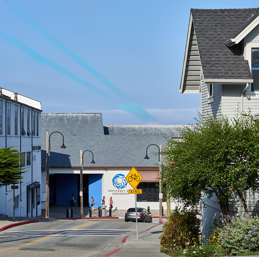 Durch die Cannery Row schlendern wir zum Monterey Bay Aquarium. Das Gelände, auf dem sich das Aquarium befindet, liegt am nördlichen, dem Wasser zugewandten Ende des heutigen Touristenmagnets Cannery Row. Zu einem guten Teil liegt das Aquarium in der von Knut Hovden im Jahr 1916 errichteten fischverarbeitenden Konservenfabrik, die damals die größte und modernste der gesamten Cannery Row war.